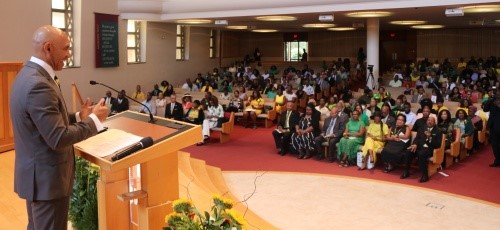 Jamaica’s Ambassador to the United States, His Excellency Major General (Ret’d) Antony Anderson, addresses the service of thanksgiving to mark Jamaica’s 63rd year of Independence, held at the Sligo Seventh-day Adventist Church in Takoma Park, Maryland, on Sunday, July 27